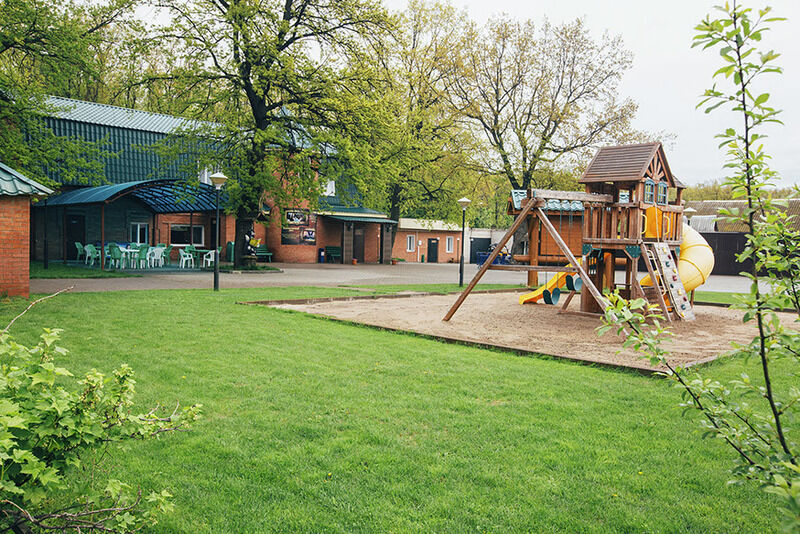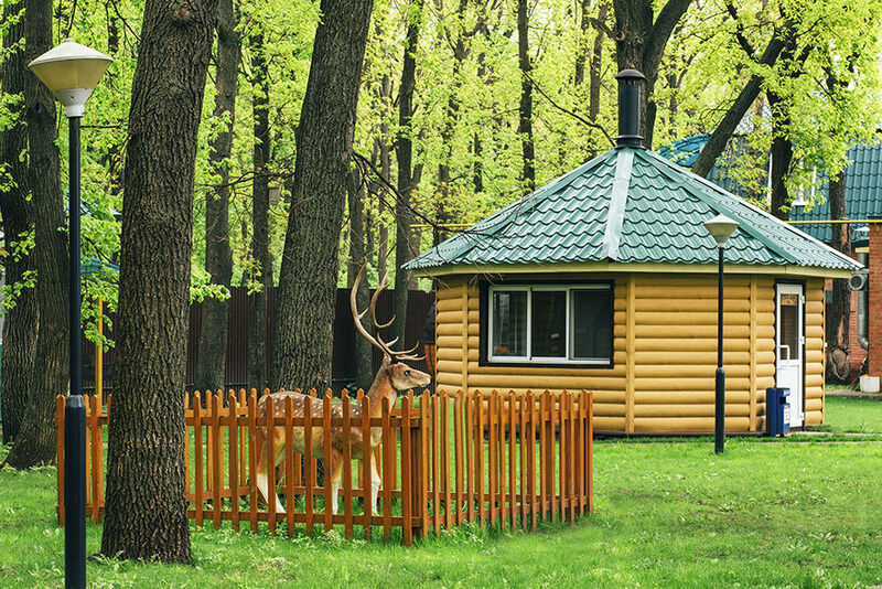Такую добрую славу отель сыскал благодаря чистому, свежему воздуху дубовой рощи, благодаря хорошему выбору круглогодичных вариантов проживания – от аккуратных бревенчатых домиков до уютных отдельных номеров гостиничного типа, благодаря развитой инфраструктуре и ухоженной территории.