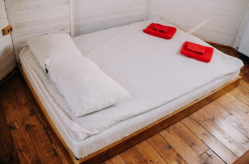 1 комната площадью 13,5 м², двуспальная кровать, детская кроватка (по запросу). Предусмотрена мангальная зона.