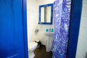 двуспальная кровать, небольшой столик на 2х,санузел.