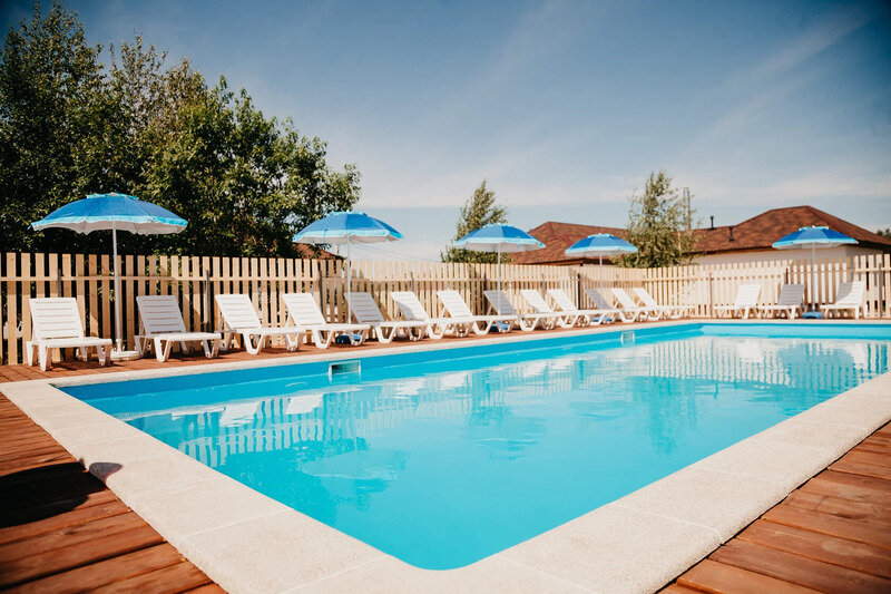 Есть уютная зона отдыха с шезлонгами, где вы сможете расслабиться и насладиться солнышком. Бассейн работает для вас каждый день с 10:00 до 21:00.