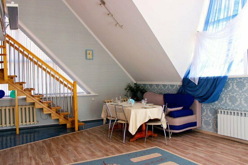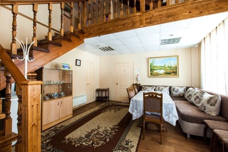 Двухкомнатный номер — уютная гостиная с мягкой мебелью и спальня с двуспальной кроватью. Санузел с душевой кабиной. Номера с видом на Волгу или на лес.
