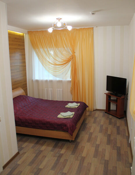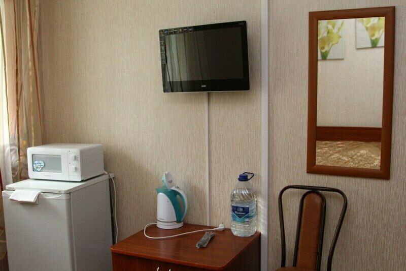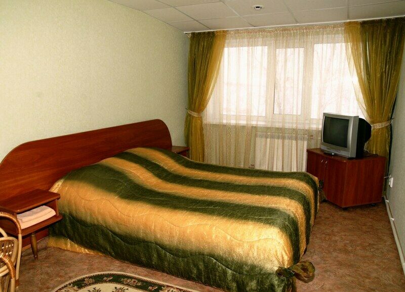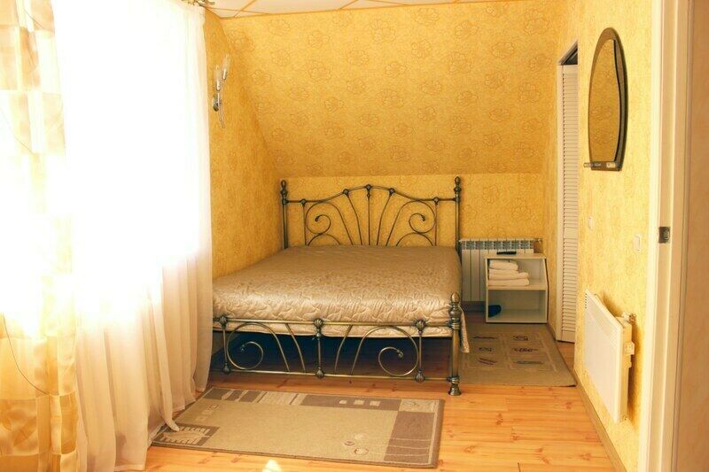 Однокомнатный номер с двуспальной кроватью. Санузел с душевой кабиной. Номера с видом на Волгу или на лес.