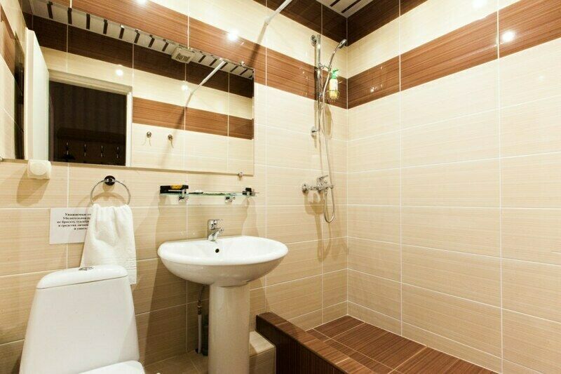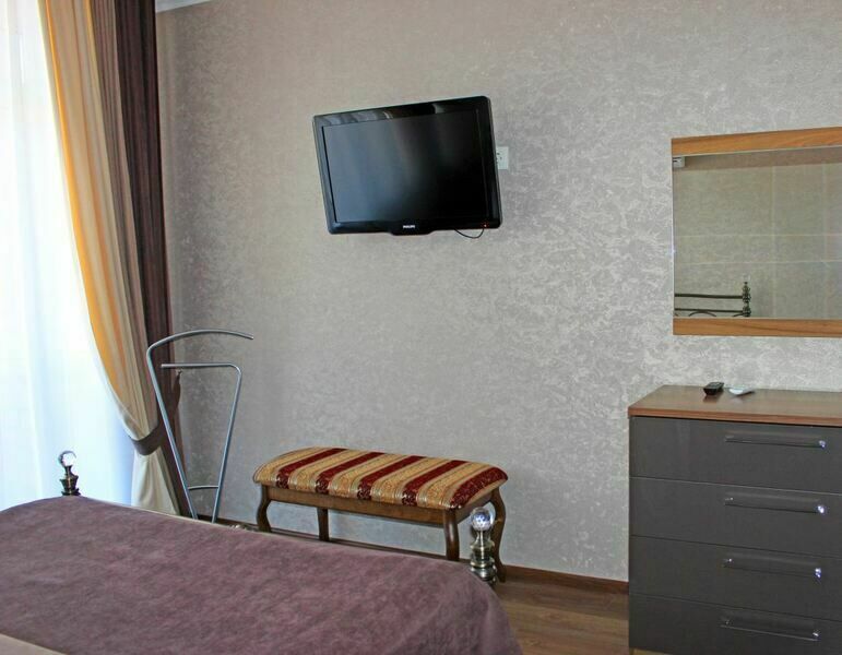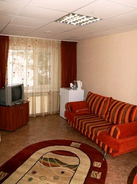 Однокомнатный номер с мягкой мебелью и двуспальной кроватью. Санузел с душевой кабиной.