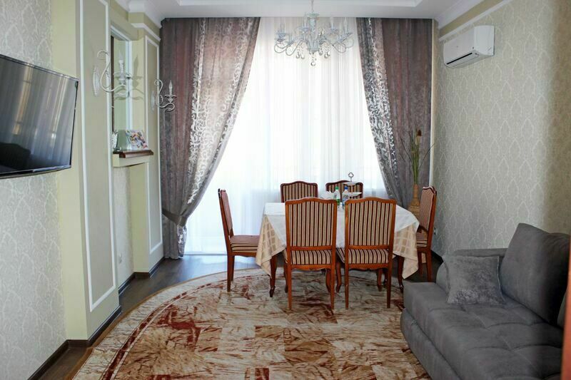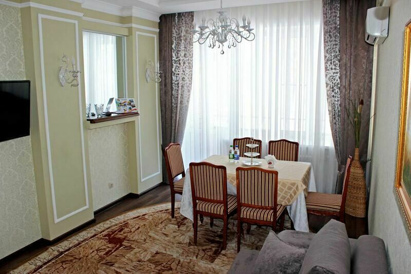 Двухкомнатный номер — уютная гостиная с мягкой мебелью и обеденным столом и спальня с двуспальной кроватью. Два санузла.