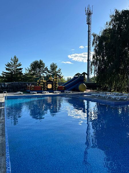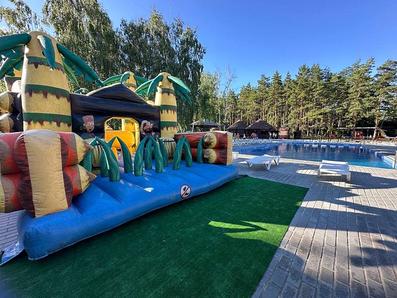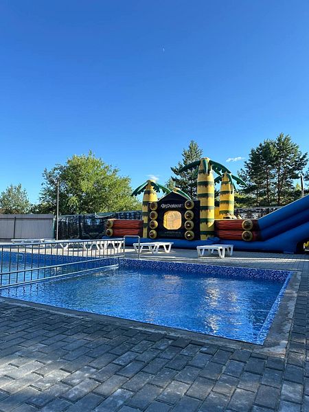 Тип бассейна: открытый бассейн, детский бассейнВода в бассейне: подогреваемый бассейнРядом с бассейном: шезлонгиВремя работы: от 09:00 до 20:00В основном бассейне присутствует зона, специально предусмотренная для детей с подходящей глубиной, что обеспечивает безопасность и комфорт во время купания. Здесь юные гости смогут весело провести время на детской горке-батуте, добавляя радость в каждый момент отдыха.