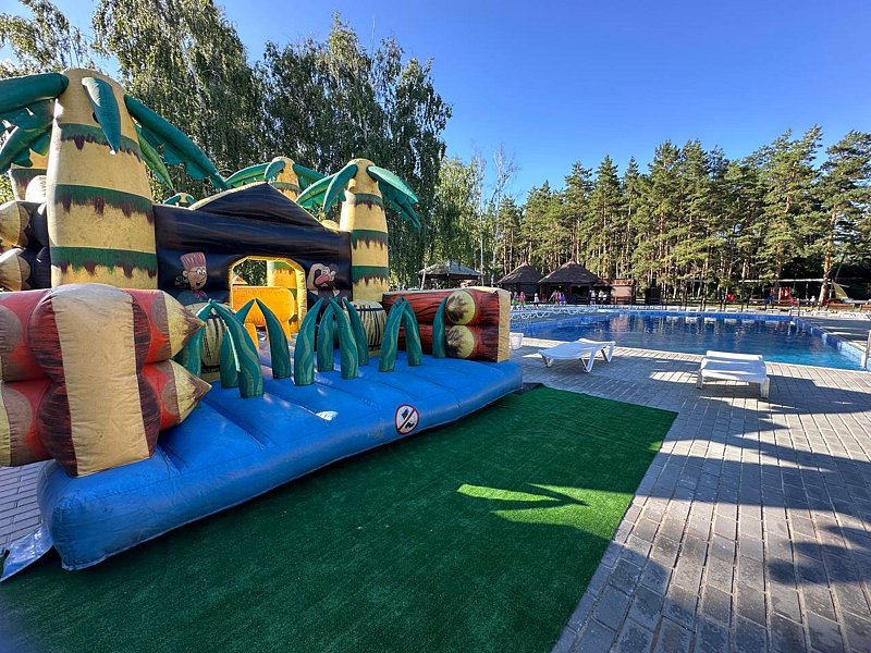 Читать полностьюВ основном бассейне присутствует зона, специально предусмотренная для детей с подходящей глубиной, что обеспечивает безопасность и комфорт во время купания. Здесь юные гости смогут весело провести время на детской горке-батуте, добавляя радость в каждый момент отдыха.