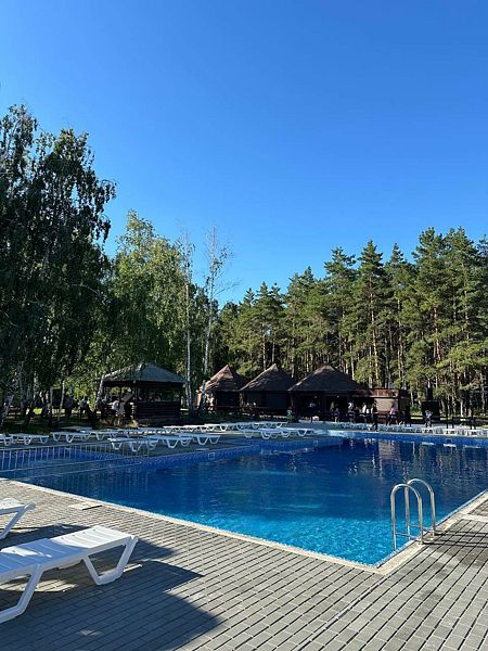 Для активного отдыха на территории работает открытый подогреваемый бассейн, детская площадка с песочницей, качелями и игровым комплексом. В летнем кафе вас ждут вкусные блюда на любой вкус, в том числе специальное детское меню. А для полноценного расслабления к вашим услугам банный комплекс с парной, гидромассажной ванной и тропическим душем.