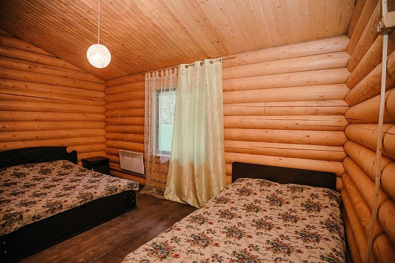 Двухместный домик. Отличный вариант прекрасно провести выходные. Дом хорошо отапливается. Внутри дома: большая двуспальная кровать, телевизор, холодильник, микроволновая печь, санузел, душевая кабина.