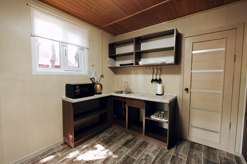 Двухместные номера в гостинице (№2,5,6,7,8,9). В номере спальня с двуспальной кроватью, санузел (душевая кабина, раковина, туалет), общая кухня, холодильники, гостиная, большая веранда с мангалами.