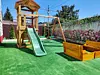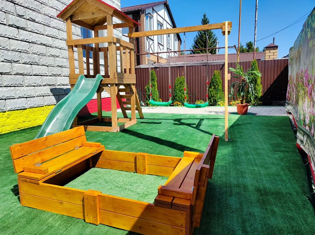 Для самых маленьких гостей предусмотрена детская площадка с горкой, песочницей и качелями.