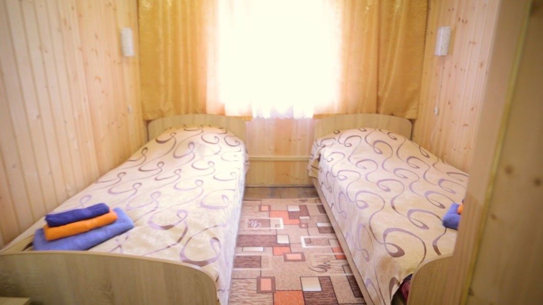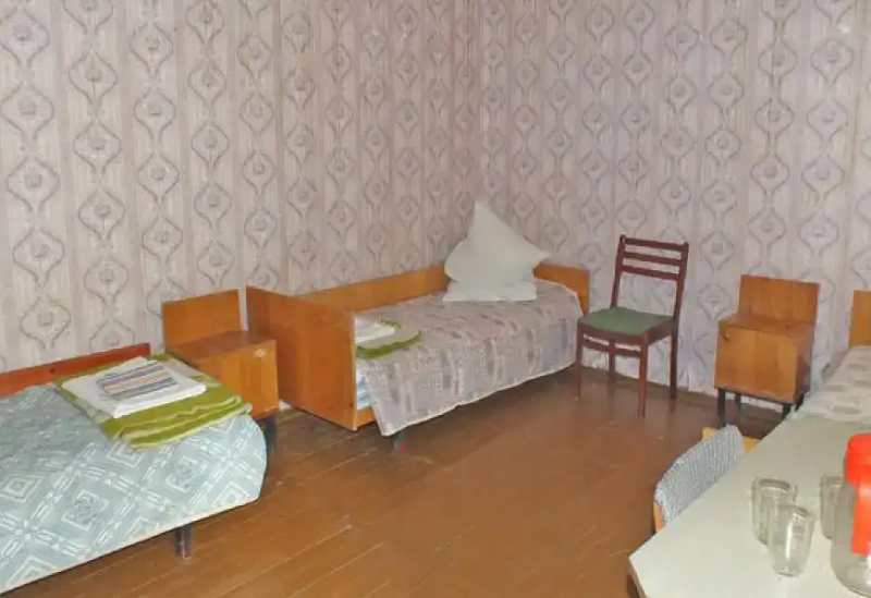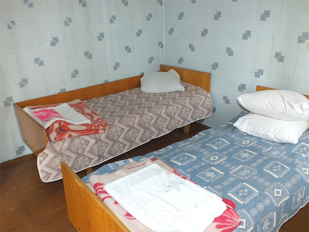 Дом находится за территорией санатория. В доме имеются две кровати, шкаф, стол, стулья.