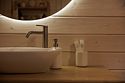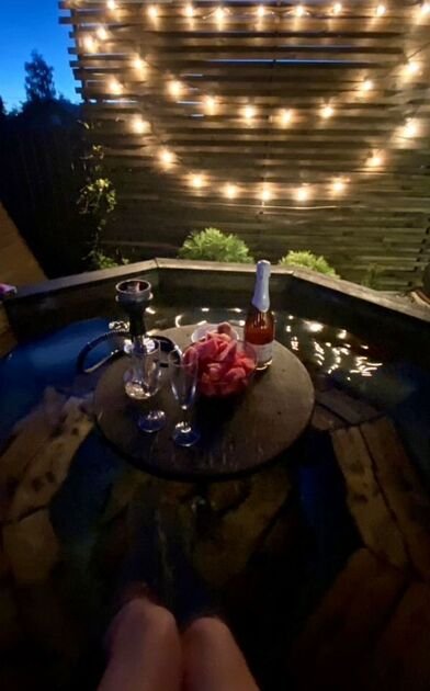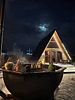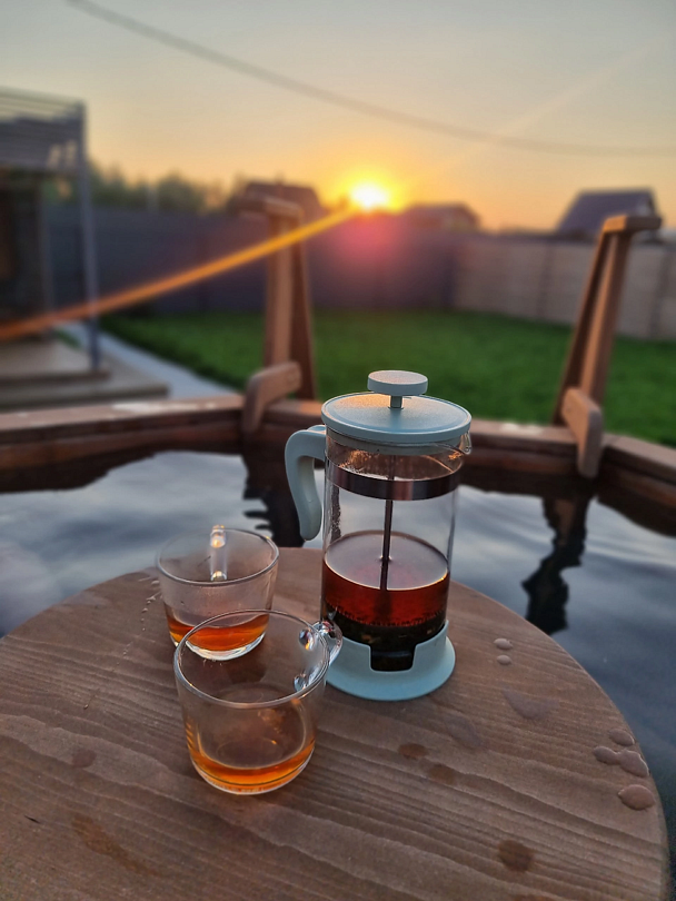 Температура воды настраивается по вашему усмотрению и поддерживается в течение трех часов. Купель вмещает от четырех до шести человек, и в ее центре находится столик для напитков и закусок. Подготовка к использованию занимает от четырех до пяти часов, поэтому о намерении воспользоваться чаном необходимо уведомить заранее, желательно за день до заезда.
