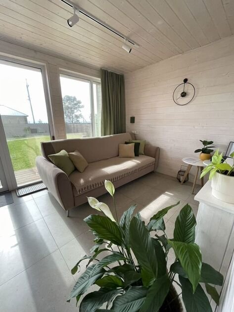 В вашем распоряжении гостиная с электрическим камином, подвесное кресло-гамак, полностью оснащенная кухня, телевизор Smart TV, умная колонка Алиса, виниловый проигрыватель с пластинками, настольные игры, Wi-fi. В доме два двуспальных места. Комфортный санузел с душевой.