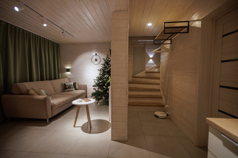 Каждый дом оборудован всем необходимым для комфортного проживания: от умной колонки, которая подберет музыку под настроение, до полностью оснащенной кухни с посудомоечной машиной и капсульной кофемашиной. Гостям предоставляются постельные принадлежности, косметические принадлежности и возможность бесконтактного заселения, что обеспечивает максимальное удобство во время пребывания. Для семей с детьми предусмотрены настольные игры и спортивный инвентарь, что сделает отдых еще более насыщенным.