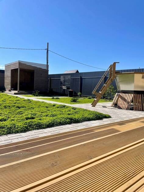 Читать полностьюУ каждого дома есть собственный банный чан. Парение происходит на свежем воздухе, что позволяет голове оставаться прохладной, при этом тело прогревается так же интенсивно, как в классической парной.