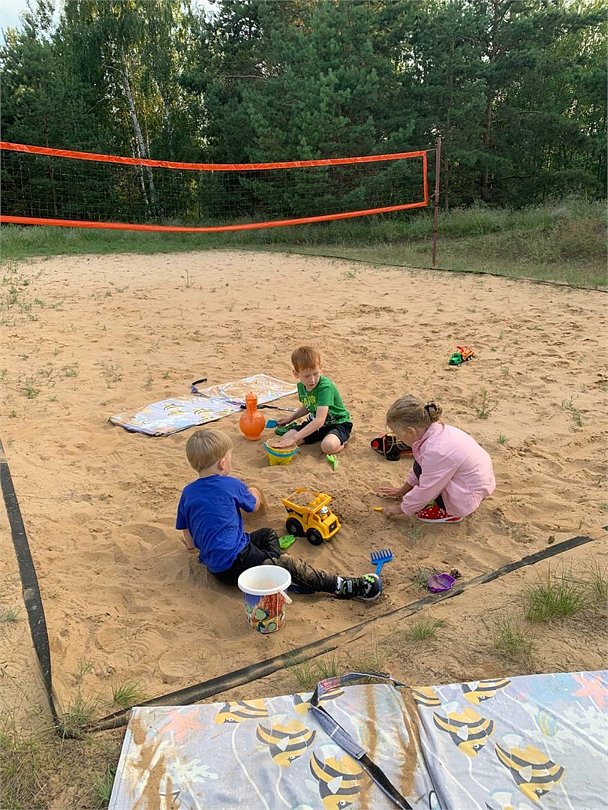 Волейбольная площадка стандартных размеров. Полностью песчаное покрытие. Стандартная сетка.