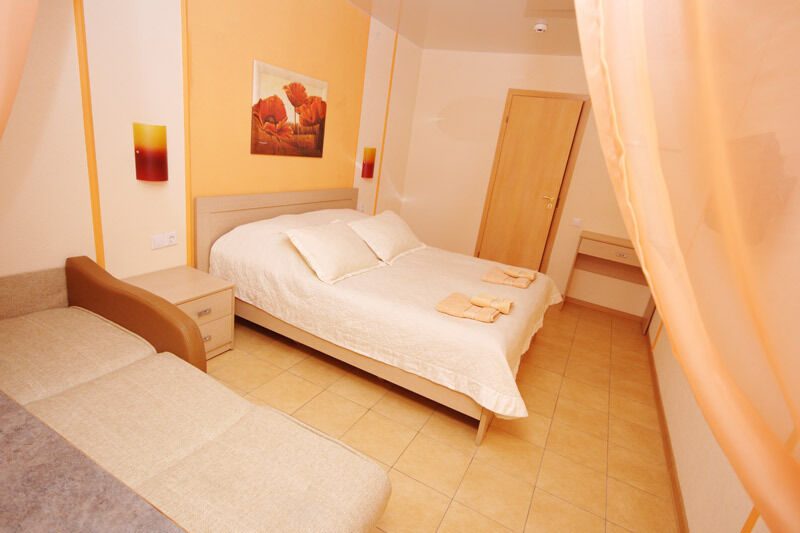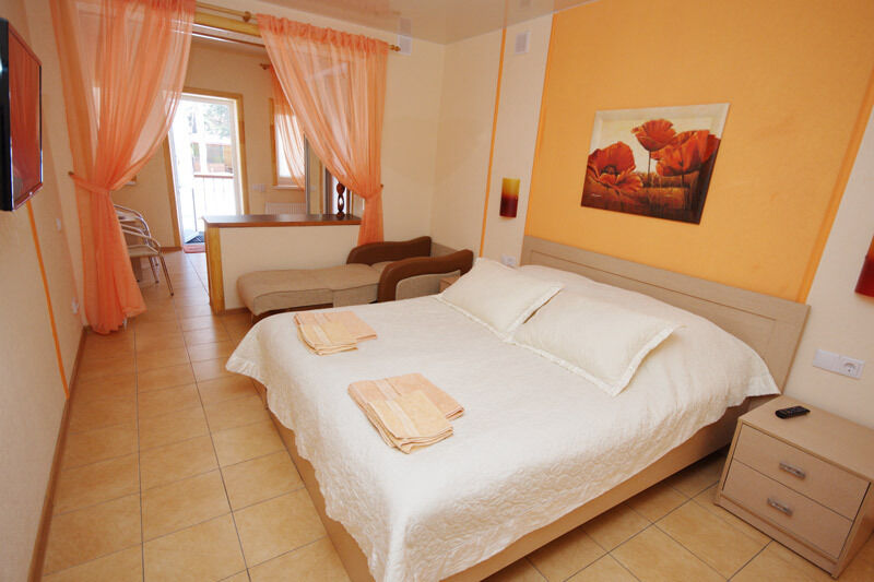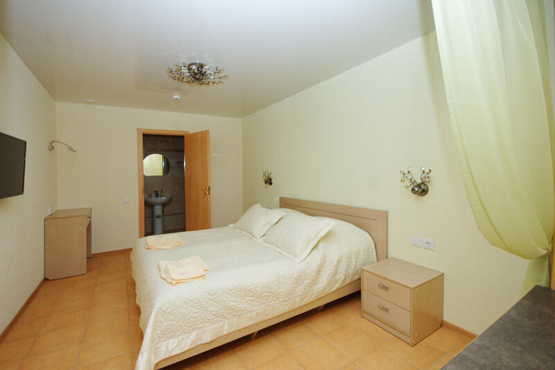 В комфортабельных номерах со всеми удобствами: теплый пол, широкоформатный телевизор, удобные кровати, душ, свежее, чистое постельное белье. Созданный уют может напомнить домашнюю обстановку.