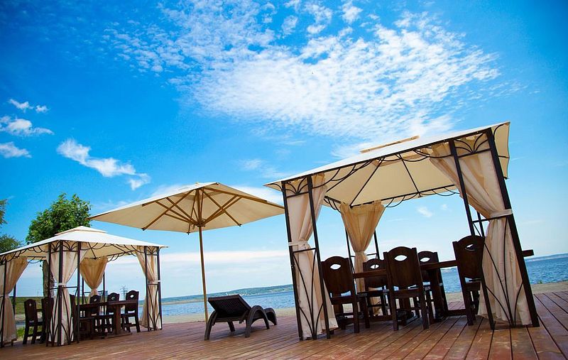 К услугам гостей - проведение свадеб, юбилеев, корпоративов, есть возможность арендовать беседки, шатер, летн.. площадку. Также на территории к услугам гостей работает баня. Питание осуществляется в ресторане на территории базы отдыха "Волга". Также отдыхающим доступна аренда всей базы.