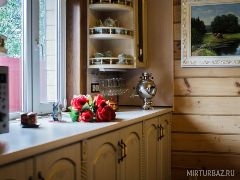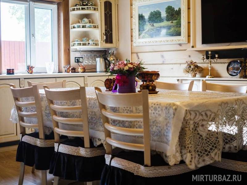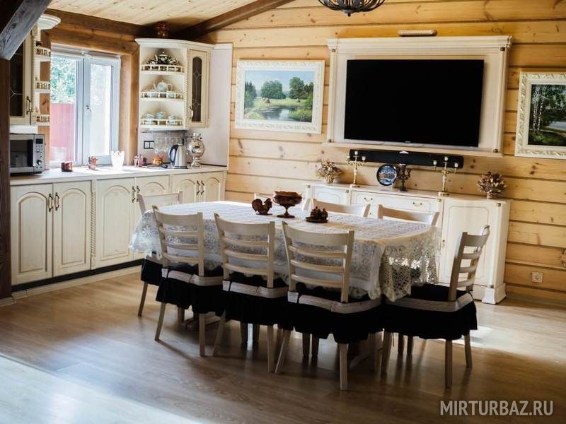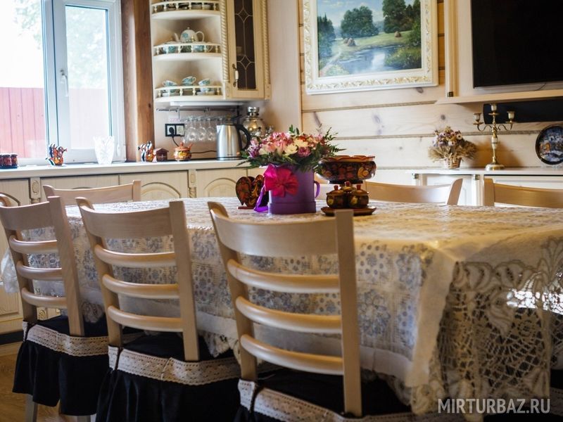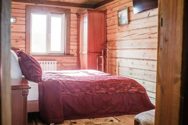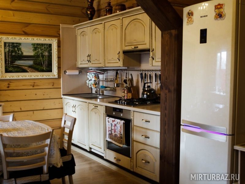Дом в исконно русском стиле из дерева, с элементами декора ручной работы. Бесплатный wi-fi, регулируемое отопление. Оснащен всем необходимым для комфортного проживания – мебель,техника,оборудованная кухня, стиральная машина.