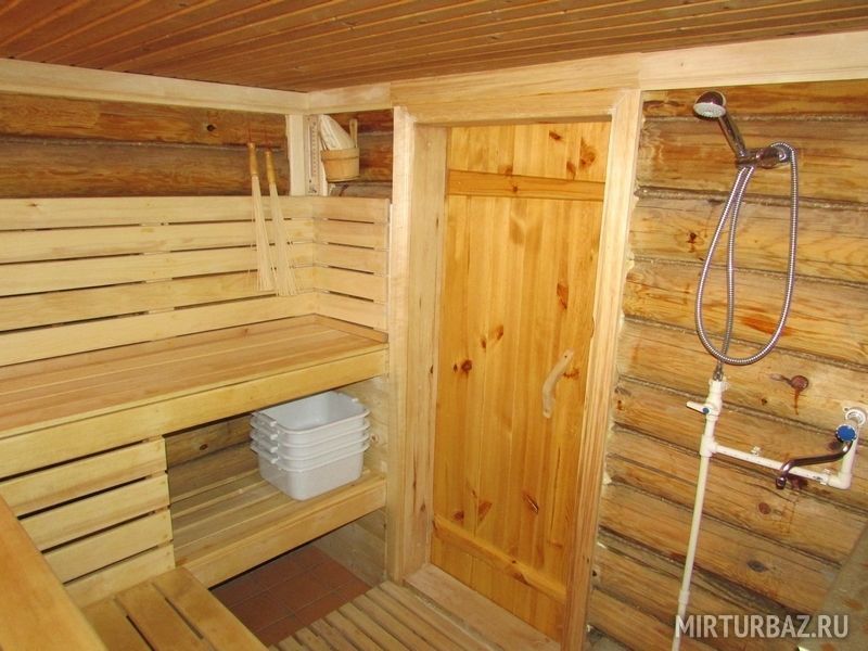 Баня: вход в баню прямо из дома, в предбаннике душ и туалет.