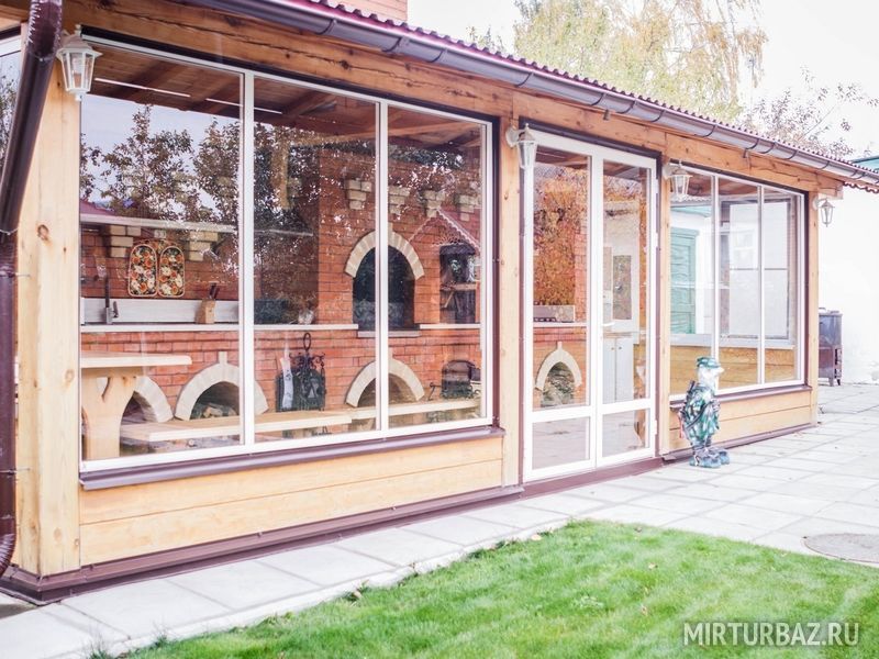 Крытая веранда: диванчики и столик для уютных посиделок.