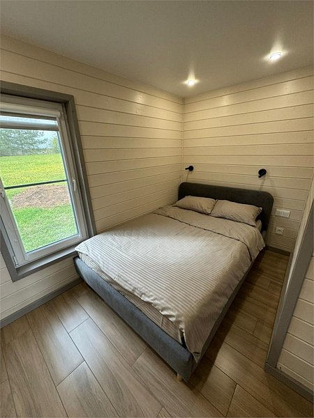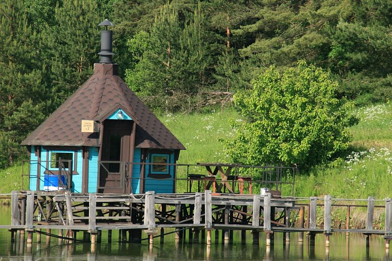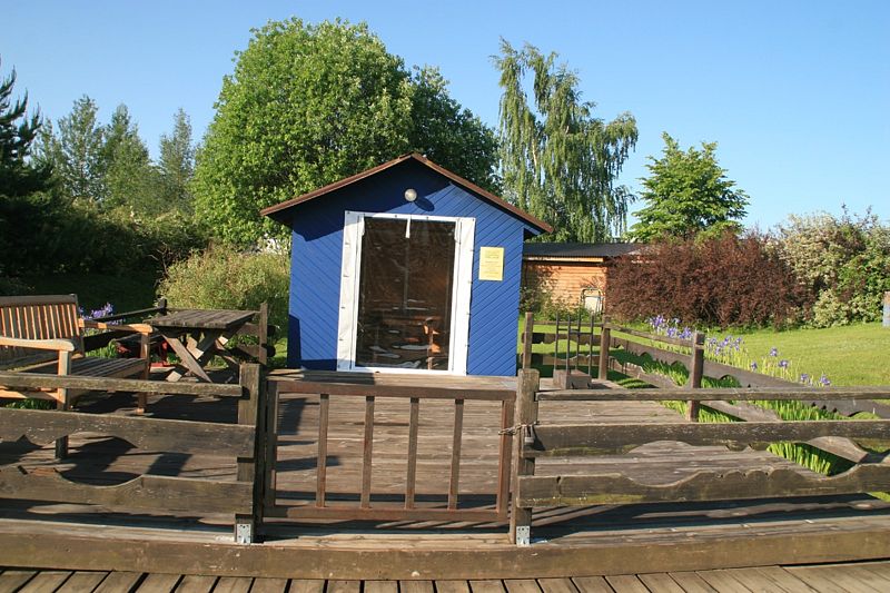 Обратите Ваше внимание, что так как «Спальный домик №2 в лесу» и «Спальный домик №1 синий» находятся на берегу водоёма, в них отсутствует водоснабжение (гости привозят с собой воду в бутылках), а туалет находится на улице за домиком (биотуалет в деревянной кабинке).