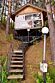 Так как домик находится на другом берегу водоёма, в нём отсутствует водоснабжение (гости привозят с собой воду в бутылках), а туалет находится на улице за домиком (биотуалет в деревянной кабинке). В домике отсутствует душ.