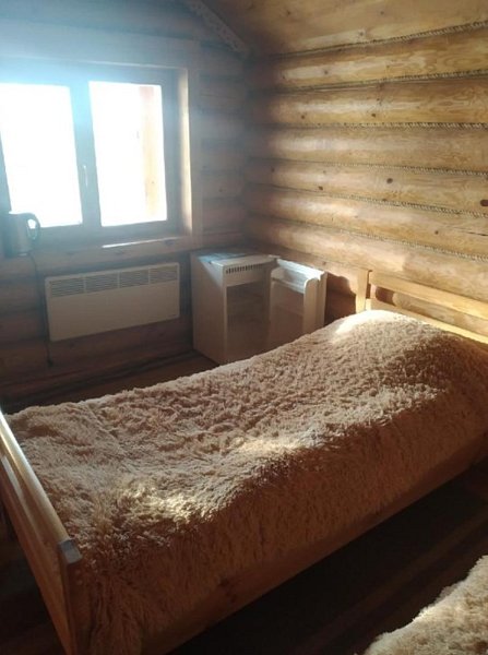 2 полутороспальные кровати с чистым заправленным постельным бельём, электрический обогреватель, электрический чайник, небольшой холодильник, дровяная печка, столик, стульчики, мангал.