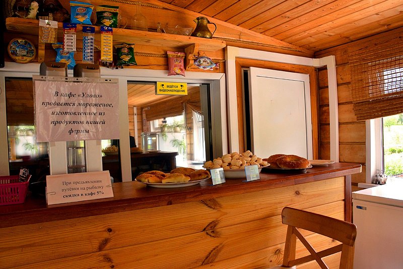 Перекусить можно в кафе, где подаются блюда из натуральных продуктов, выращенных на собственном огороде. Рядом с кафе обустроена детская площадка, чтобы дети могли играть и развлекаться.