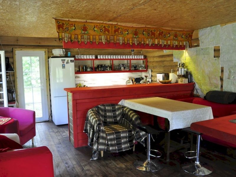 Читать полностьюТут есть все необходимое, чтобы приготовить еду как дома: плита, холодильник, термопот, большой барный стол и поменьше для детей, уютные диванчики и кресла. Рядом на улице мангал, жаровня для казана, место для костра.