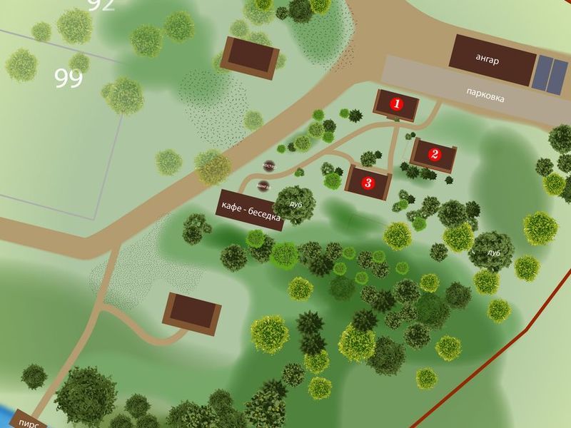 База расположена недалеко от рек Клязьма и Пекша, на живописном берегу старицы Клязьмы - озере Березовое в 130 км от Москвы в огромном лесном массиве. Время в дороге от МКАД 2 - 2,5 часа по Горьковскому направлению. Также есть удобное железнодорожное сообщение до ст. Петушки или Костерево. Эталонная «картинка» русской природы - живописная, экологически чистая местность с лесами, полями, птицами и зверюшками. Рядом с нашим экопарком находится город Костерёво, где вы сможете купить все необходимое. Искренне рекомендуем - натуральные продукты! Они здесь выращиваются своими руками.