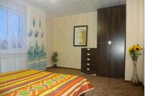 Номер обставленный спальным гарнитуром, большим угловым диваном, есть телевизор со спутниковым вещанием, отдельный сан.узел со всем необходимыми удобствами.
