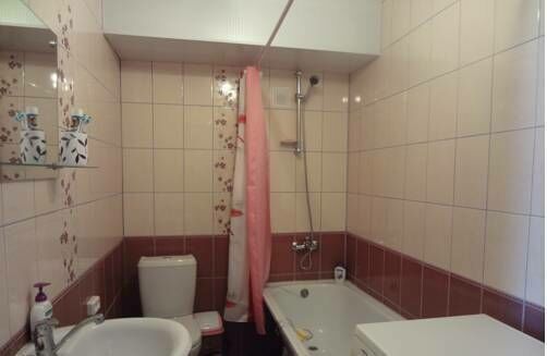 Номер оборудован большим угловым диваном, телевизором, есть сан.узел, в котором есть все необходимое, включая стиральную машину, и такую мелочь как фен.