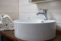 4. Ванная комната оборудована душевой кабиной, раковиной и санузлом. Есть шкафчик для вашей косметики, но предоставляем шампунь, гель для душа, жидкое мыло. Выдают махровые полотенца. Ватные палочки и диски спасут в непредвиденных ситуациях