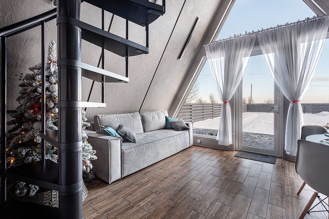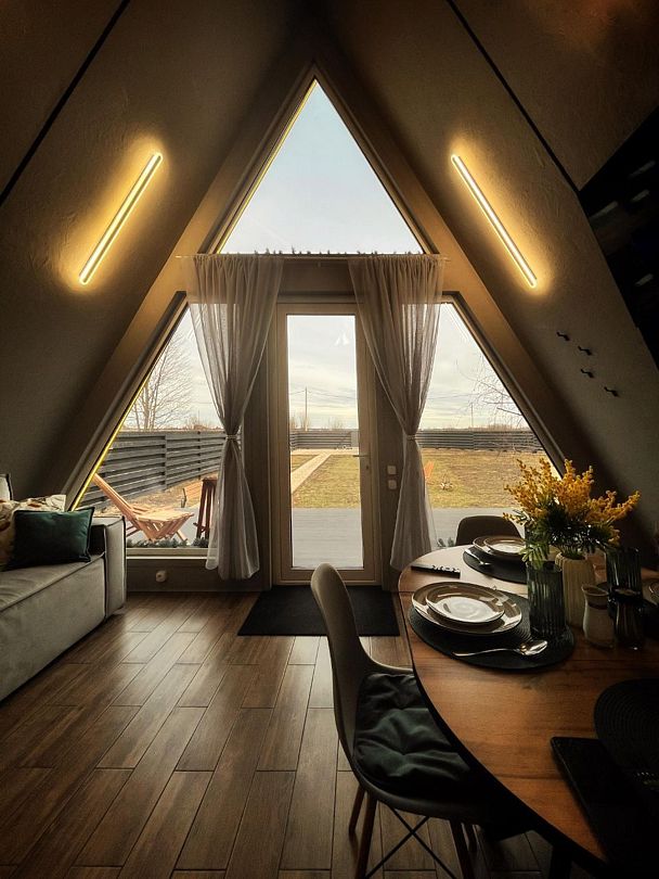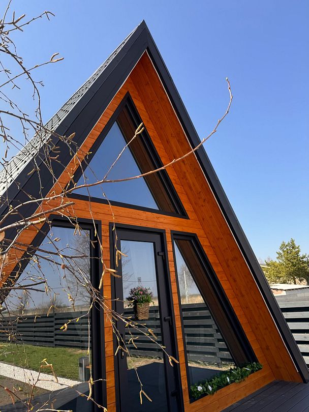 Дома в стиле A-фрейм отличается домашней атмосферой и предлагает всё необходимое для комфортного отдыха. Рядом оборудована мангальная зона для приготовления блюд на свежем воздухе.