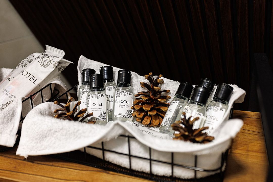 Ванная комната: комплект полотенец на каждого гостя, шампунь, гель для душа, мыло, одноразовый зубной набор, фен, ватные палочки, ватные диски.