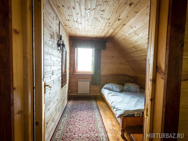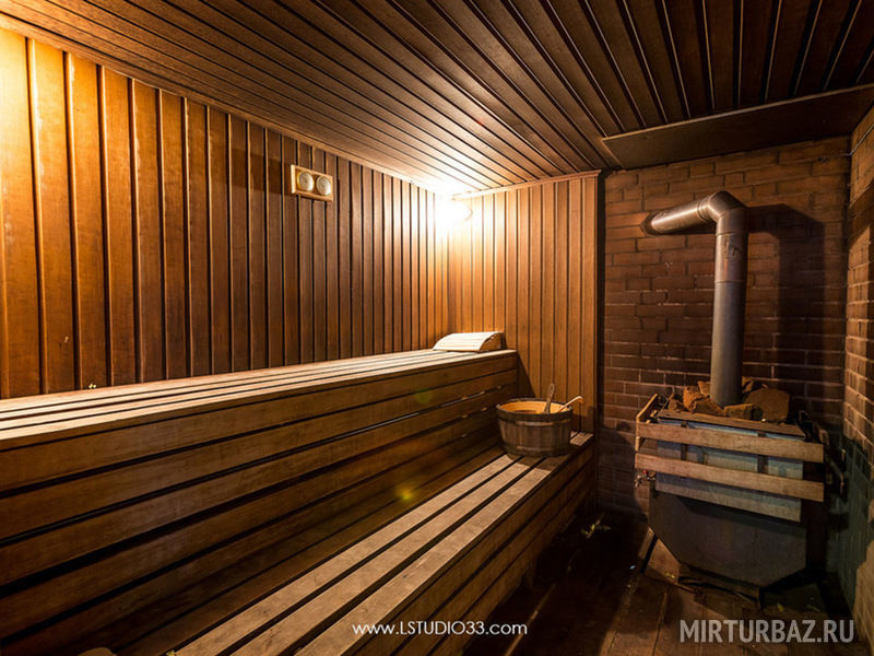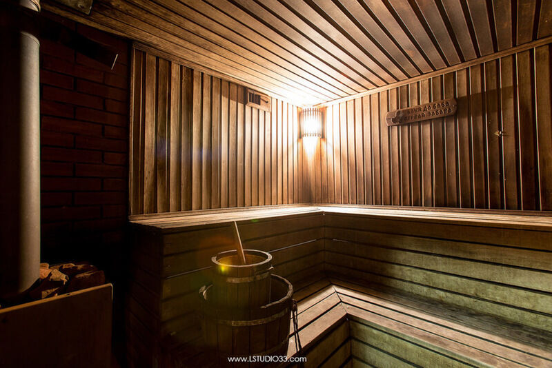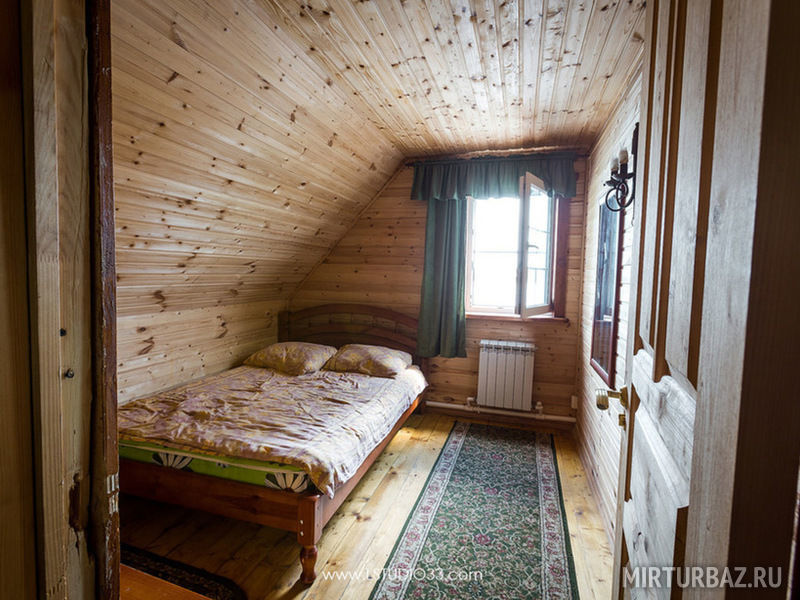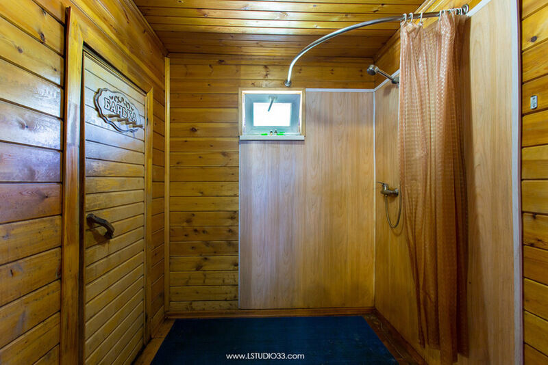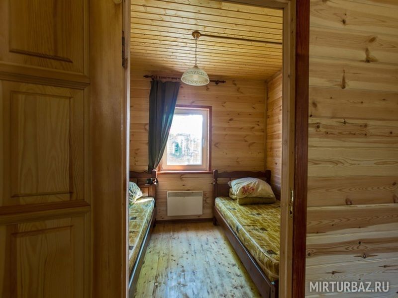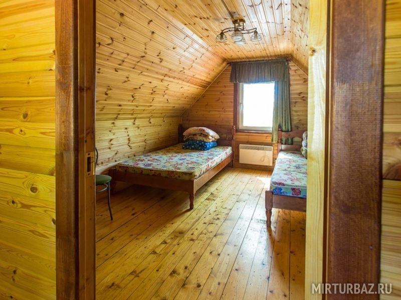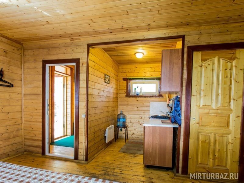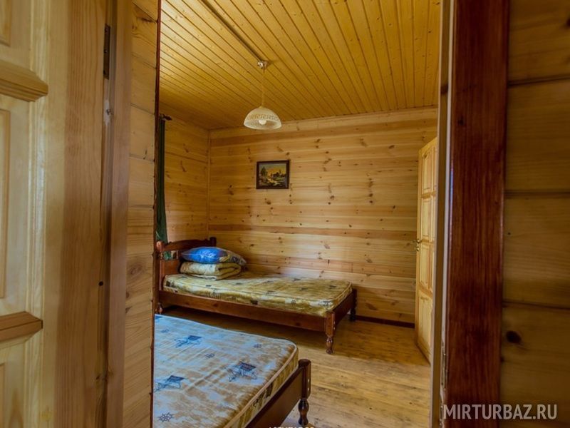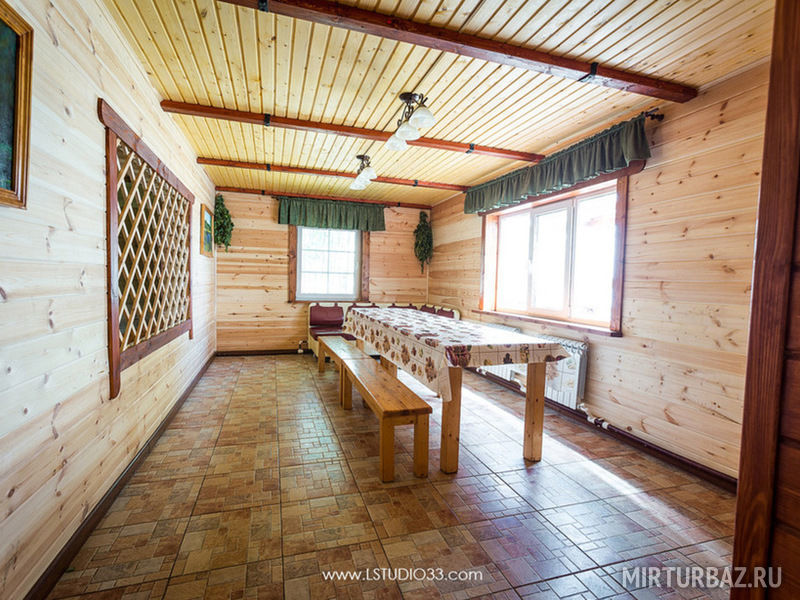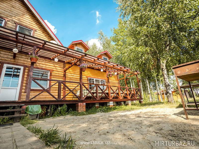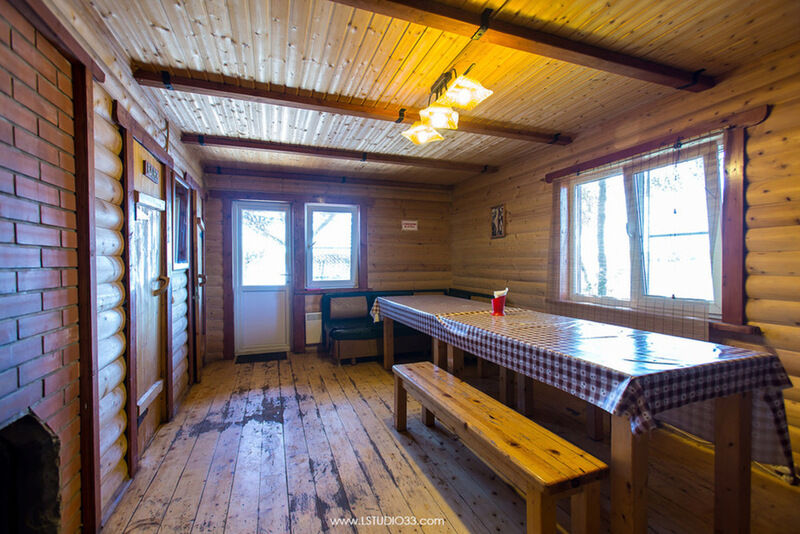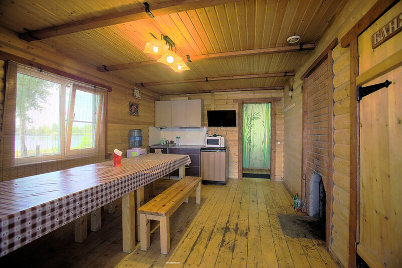 Русская баня на дровах (парилка, душ, гостевой зал на 8 человек, небольшая кухня, холодильник, телевизор, микроволновая печь, мангал на улице, туалет), находится на берегу озера, есть оборудованный мостик. В зимнее время возможность искупаться в прорубе, выдаются простыни.