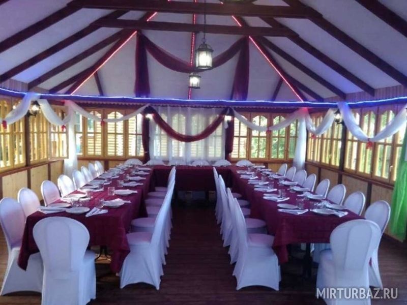 На территории имеется открытая беседка, с размещением 25–30 человек. Находится на берегу озера с мостиком с возможностью искупаться, в беседке имеется посуда и музыкальный центр. Подходит для проведения различных торжеств. Можем сами приготовить и оформить праздничный стол, по предварительному заказу.