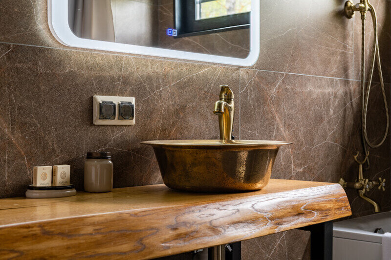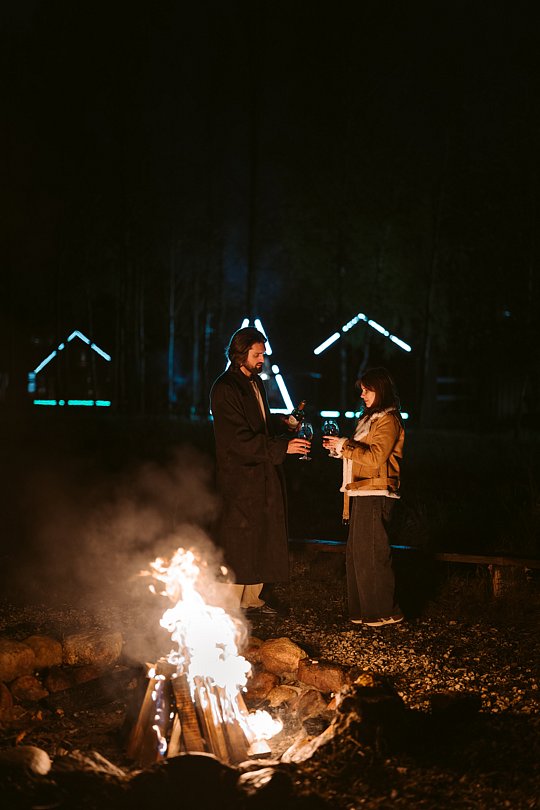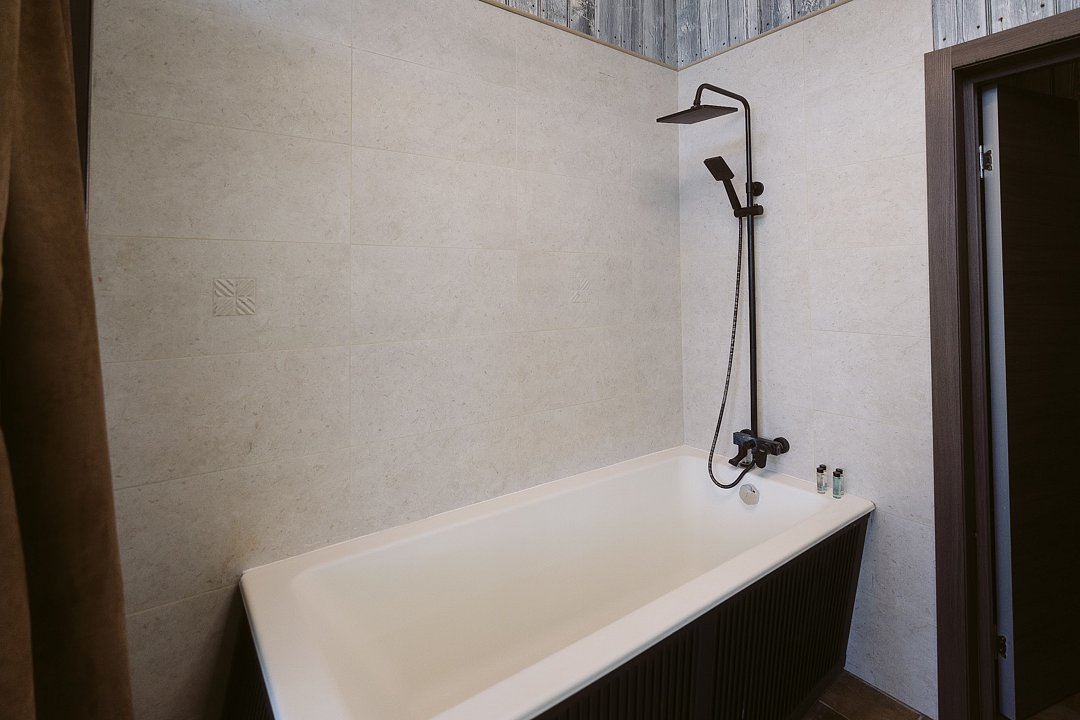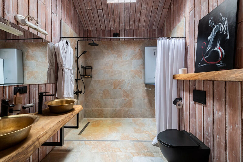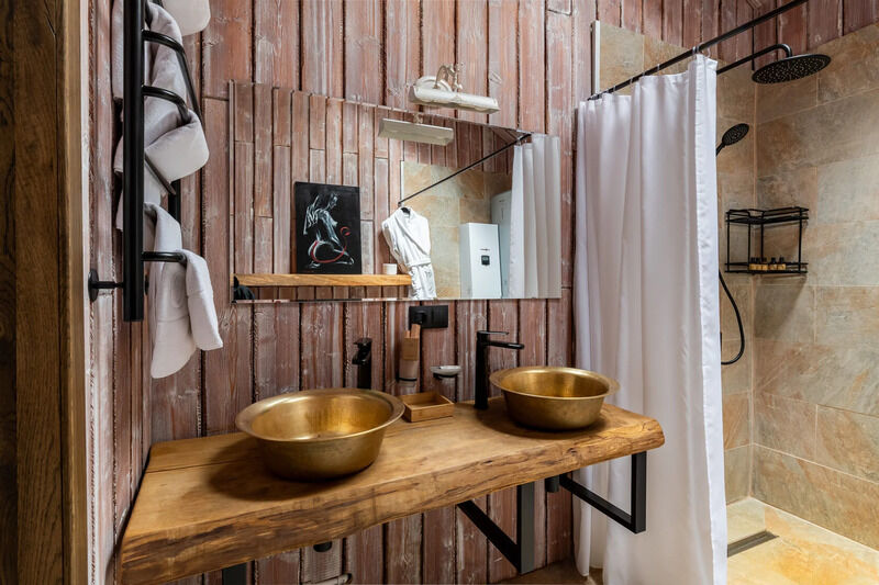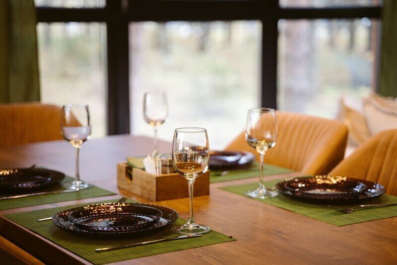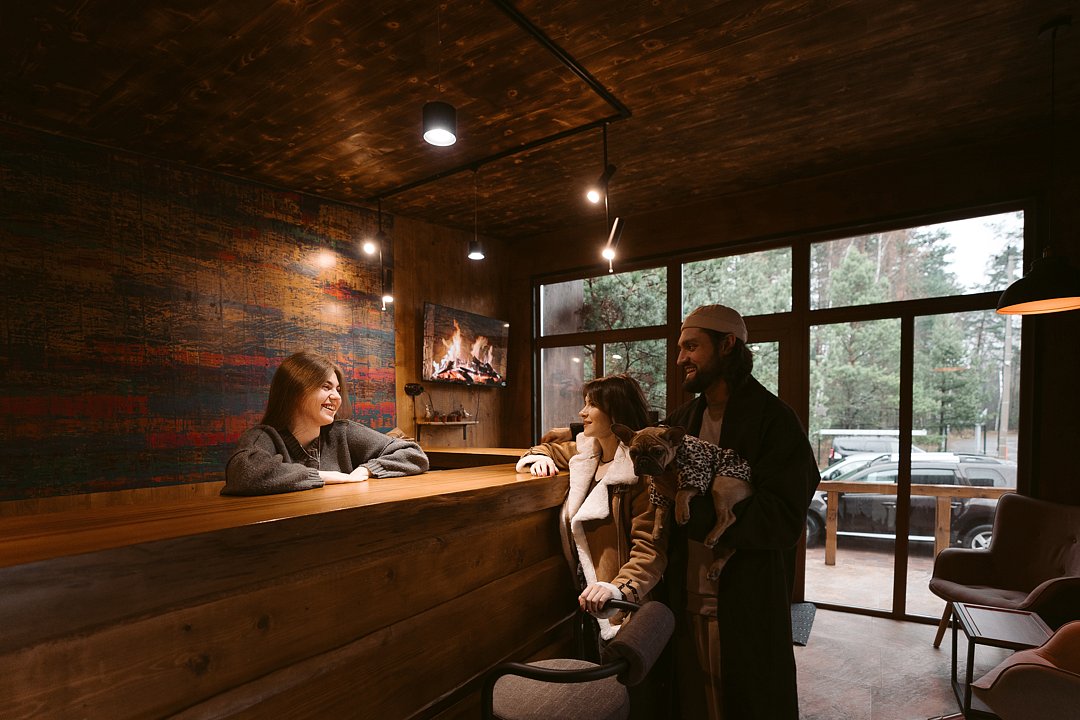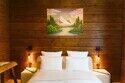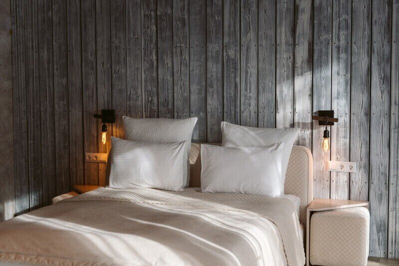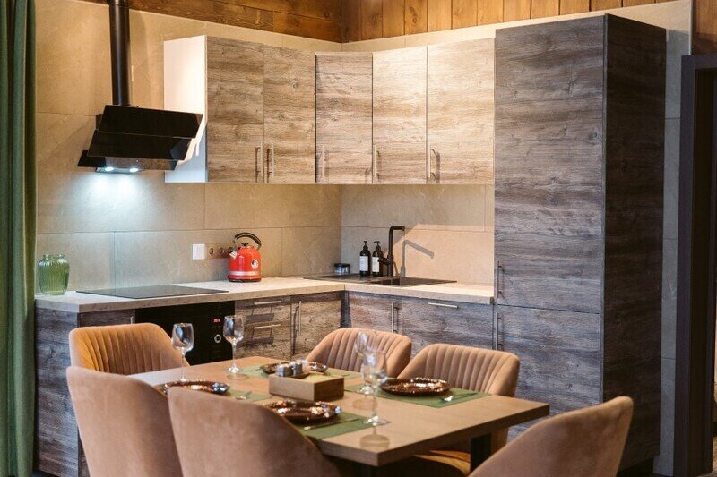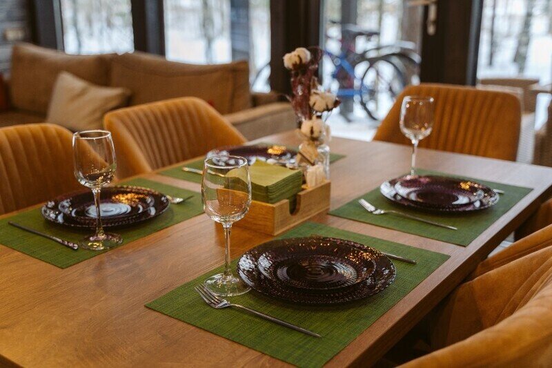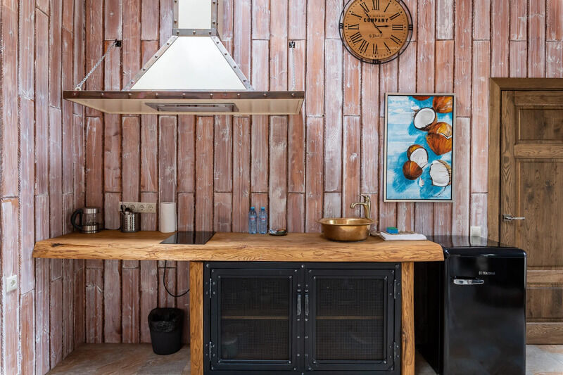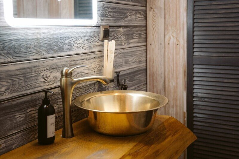 К проживанию предлагаются уютные домики вместительностью от 2 до 6 человек. Вам не придется переживать о комфорте, ведь каждый домик оснащен мягкой кроватью для хорошего и крепкого сна, ванной комнатой с туалетными принадлежностями и феном. Кухня оборудована современной бытовой техникой, чтоб гости смогли самостоятельно готовить любимые блюда. Помимо этого, в домах есть телевизор со Smart TV, кондиционер и Wi-Fi.