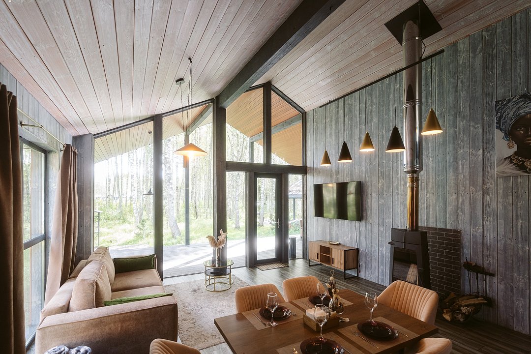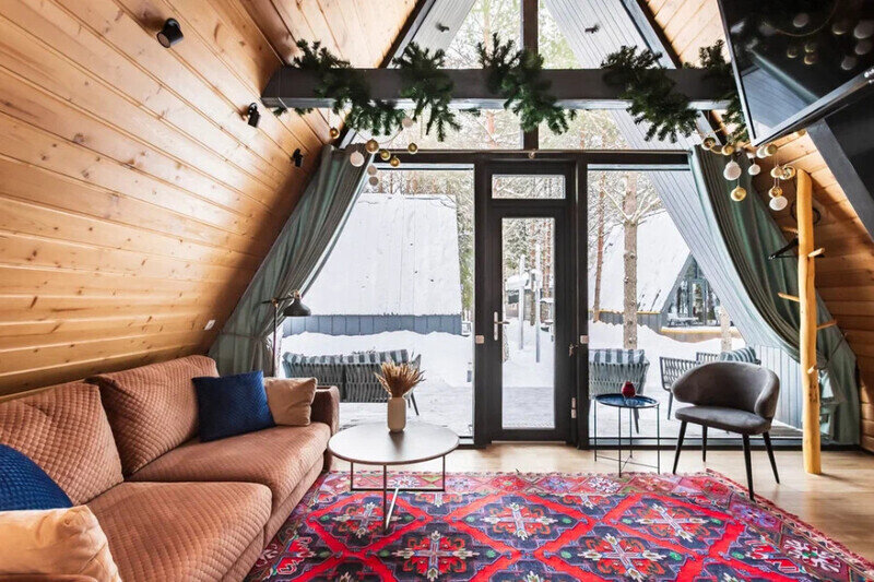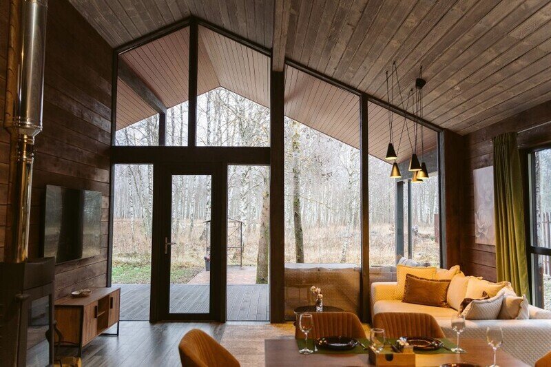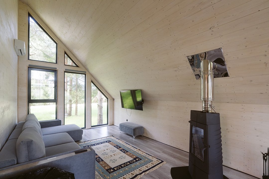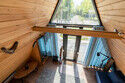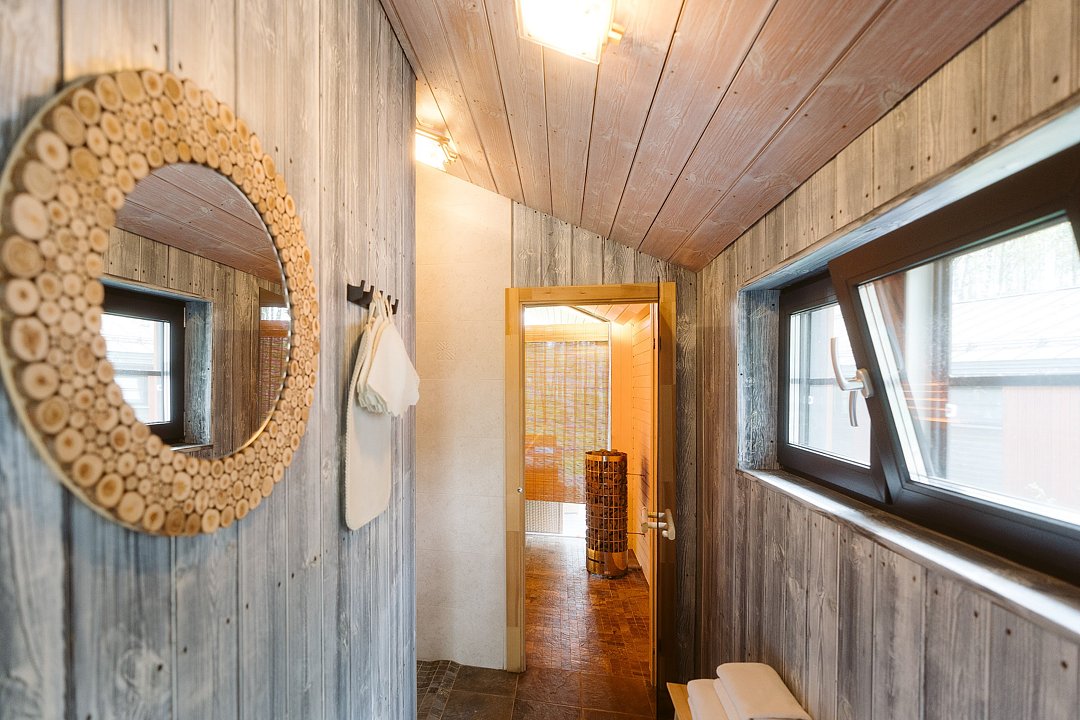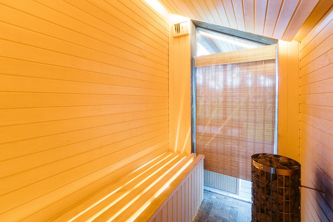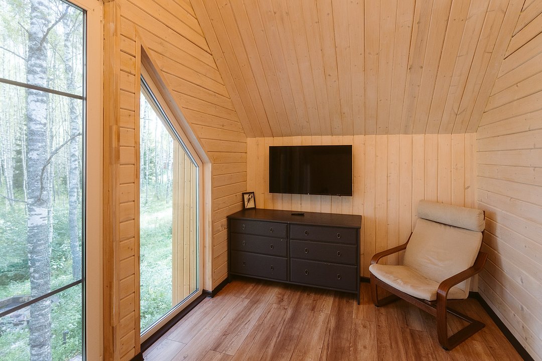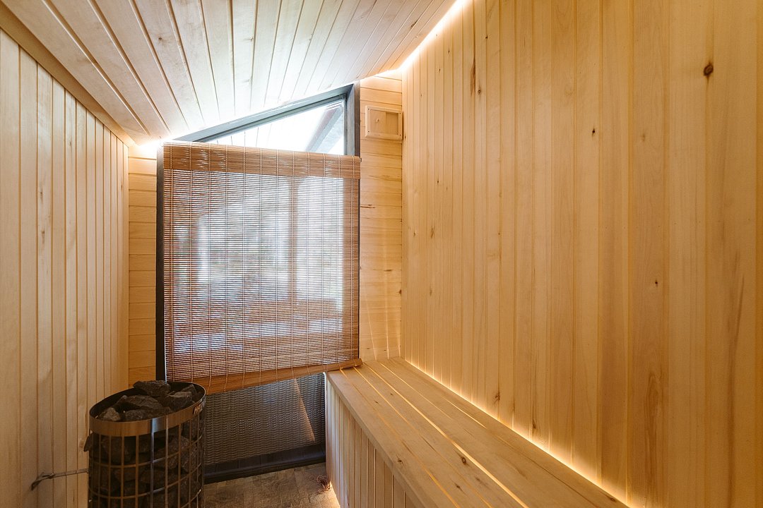 В этом уютном домике с большим панорамным окном есть своя собственная сауна.