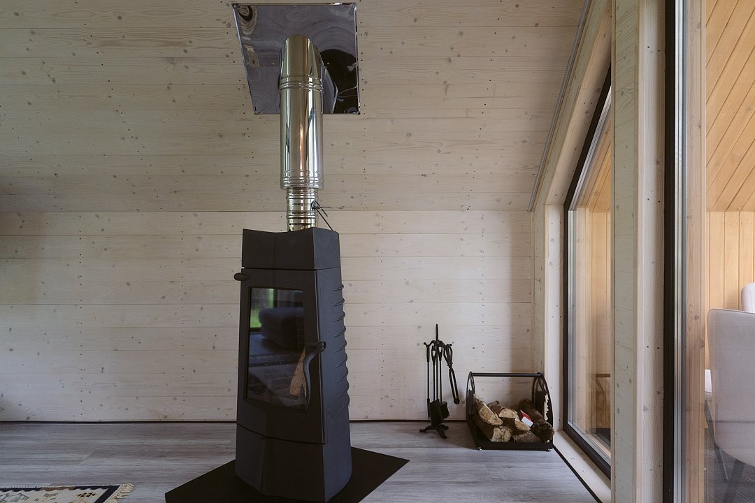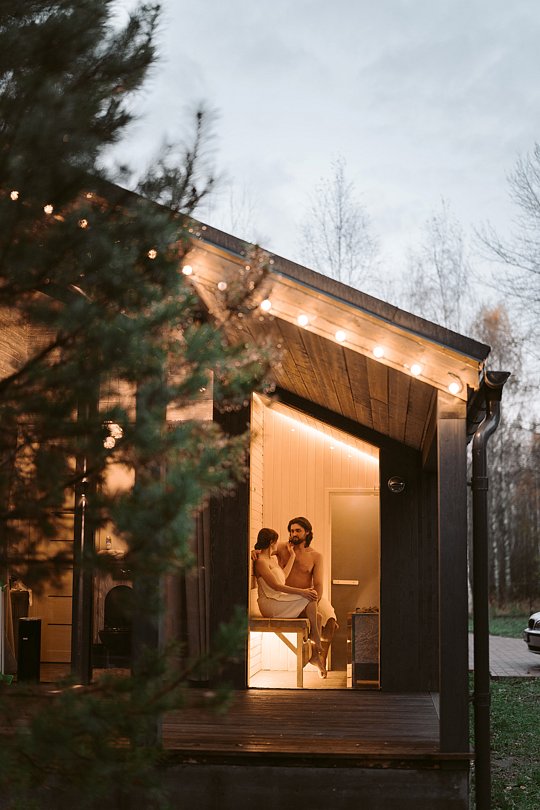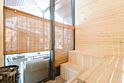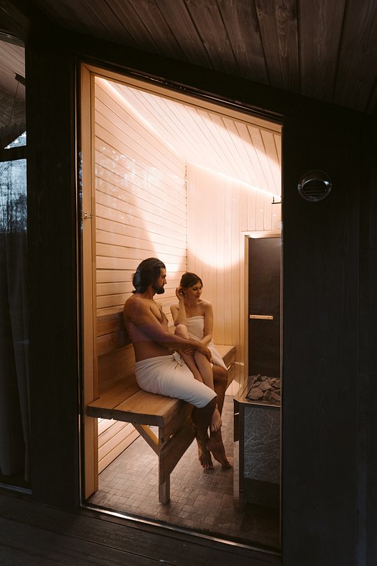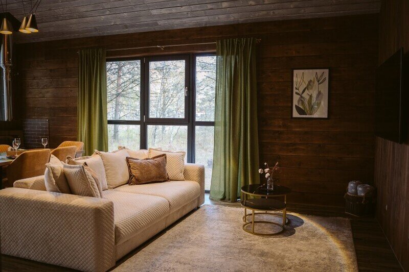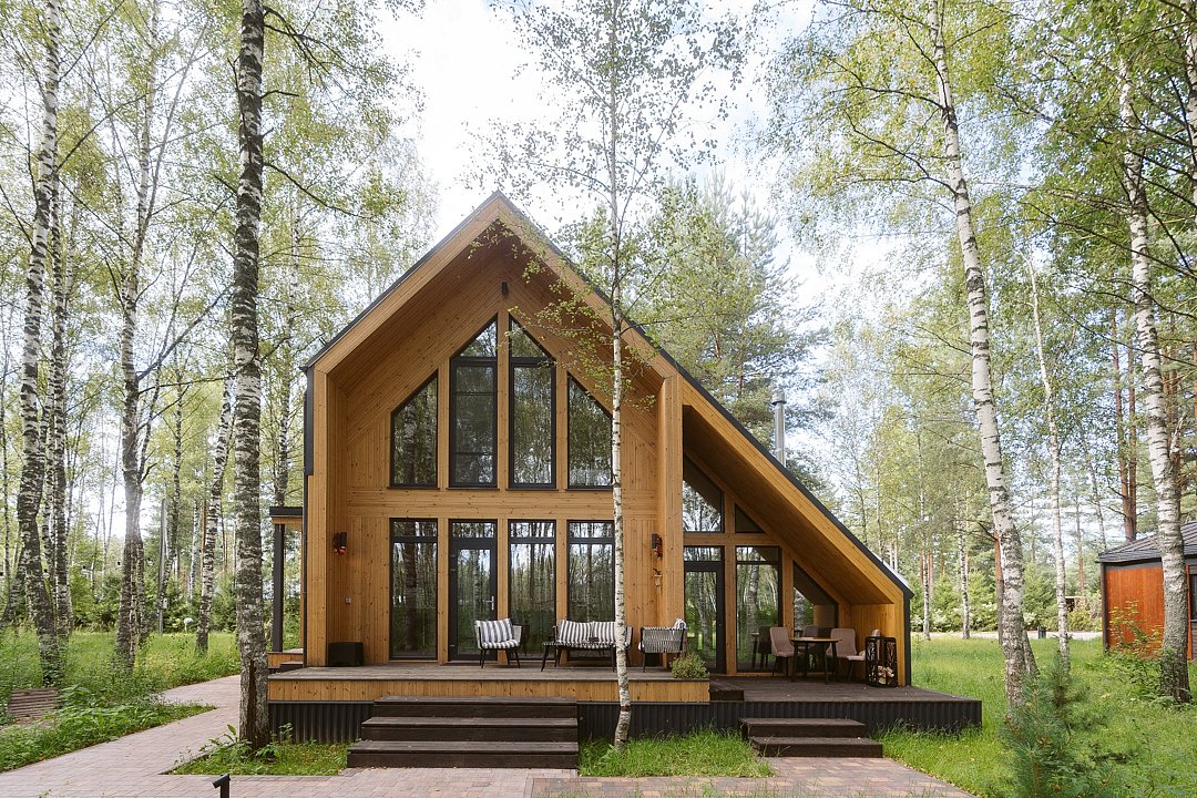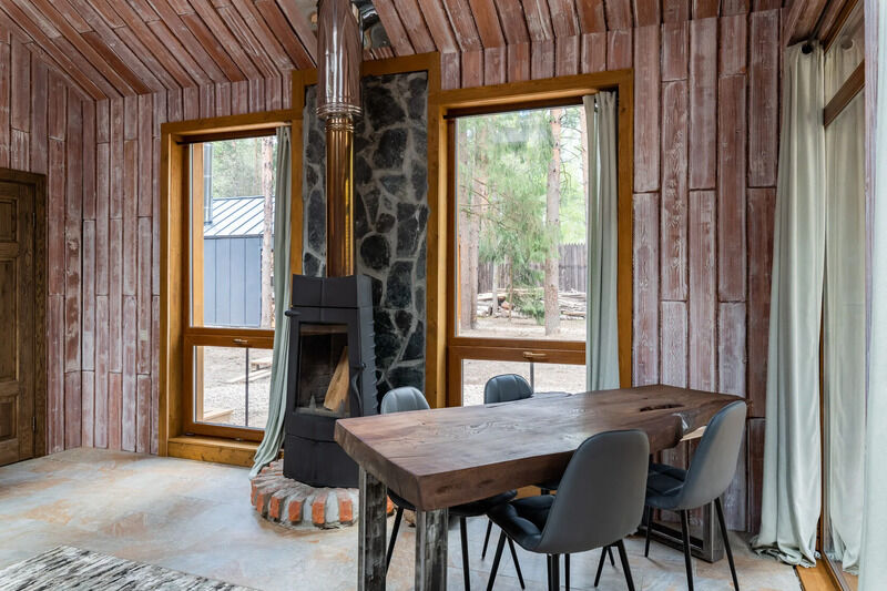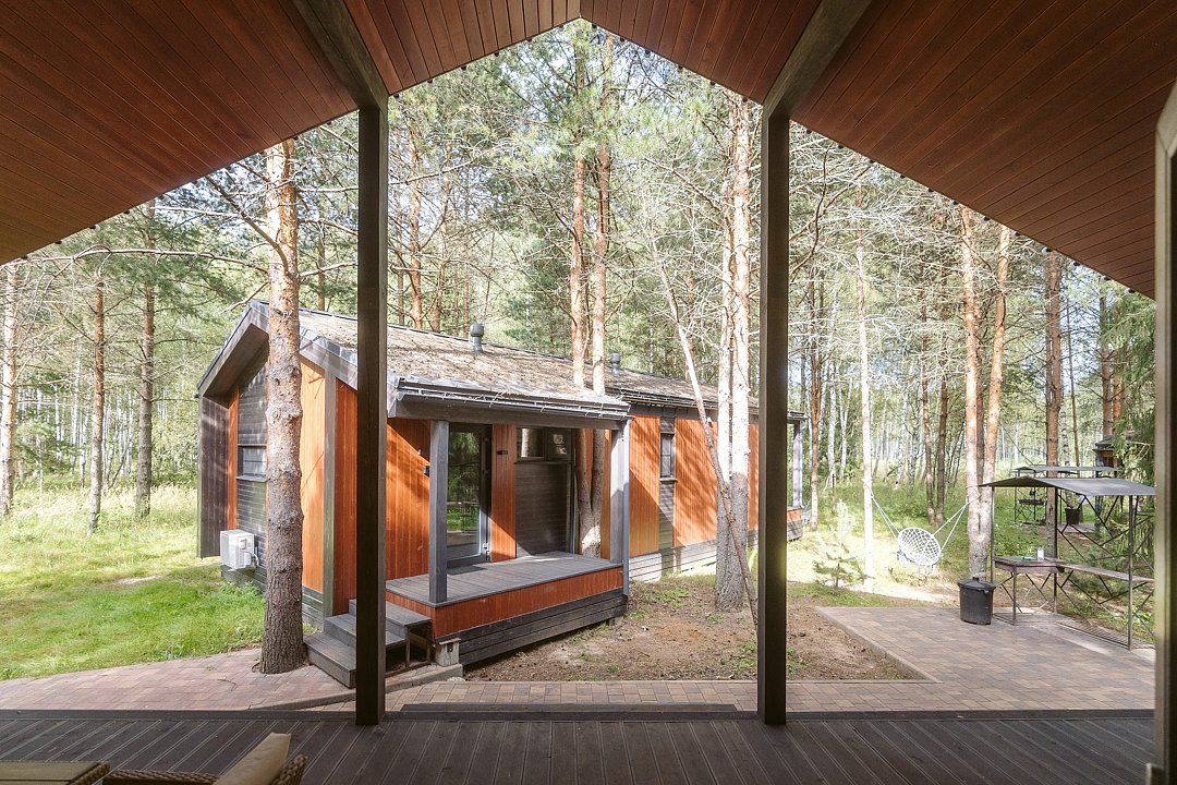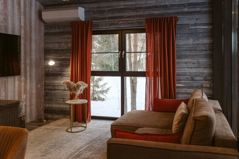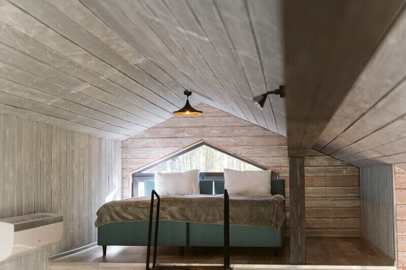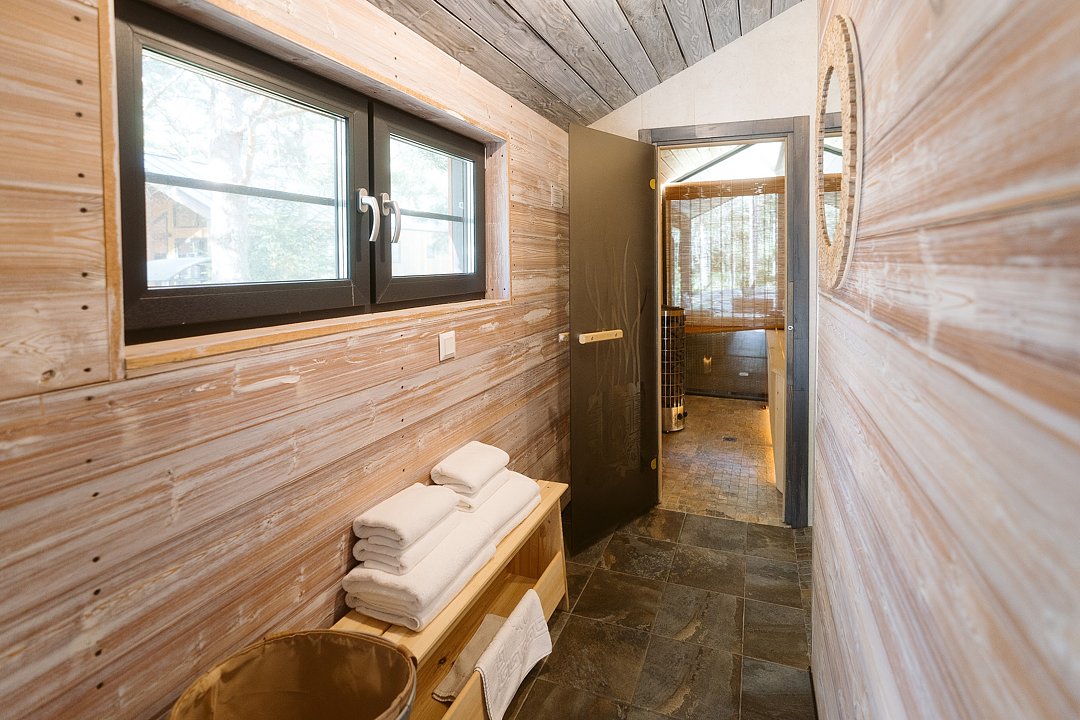 В этом уютном домике с большим панорамным окном есть своя собственная сауна.