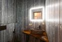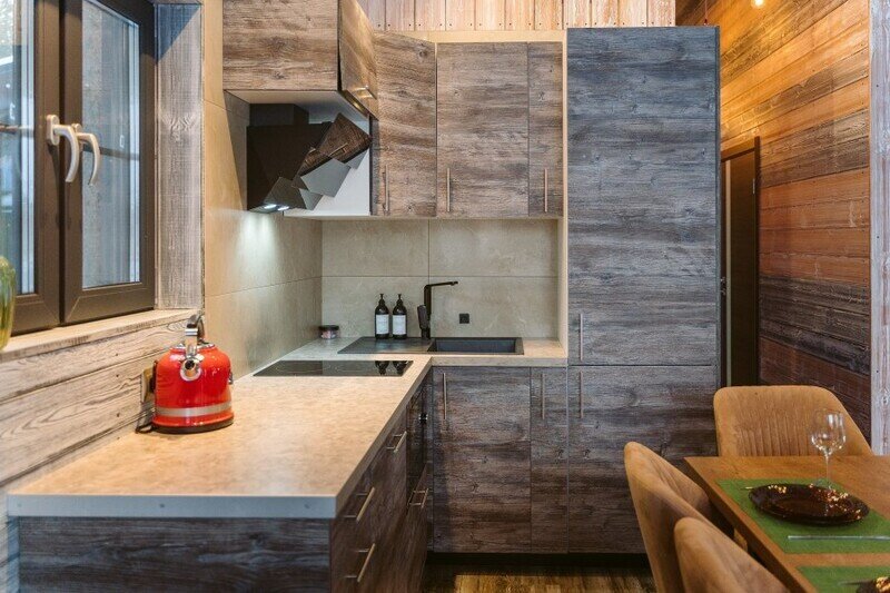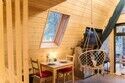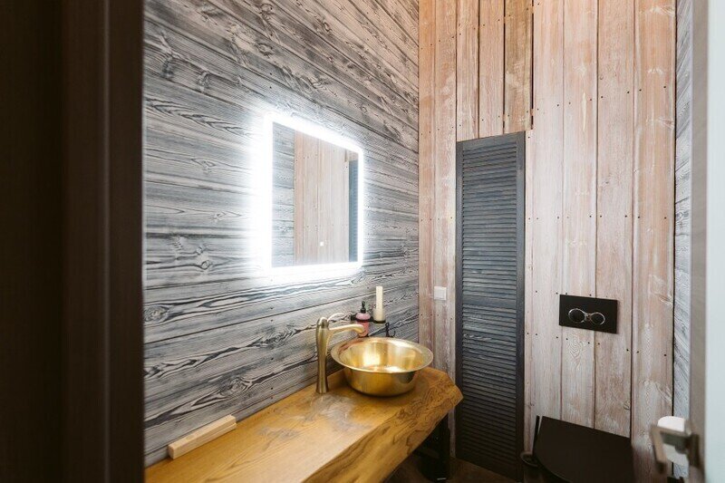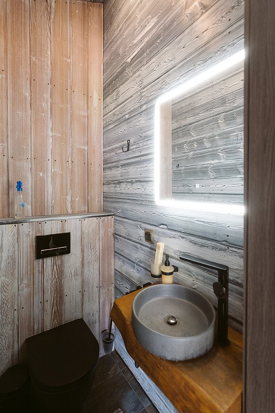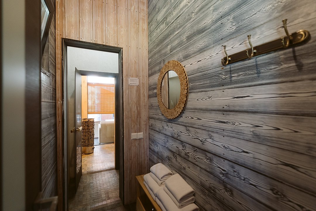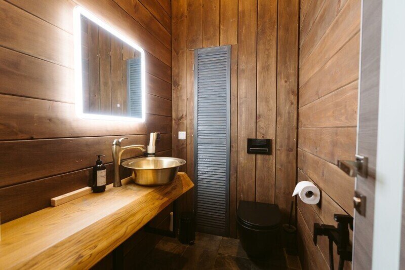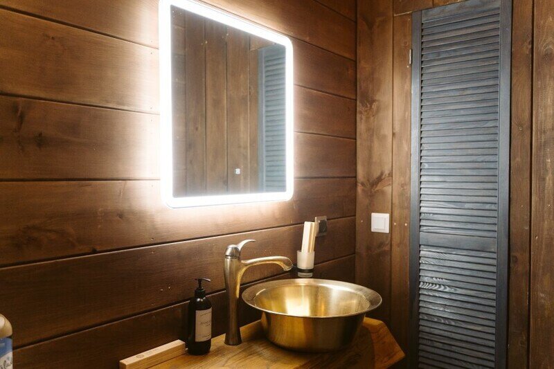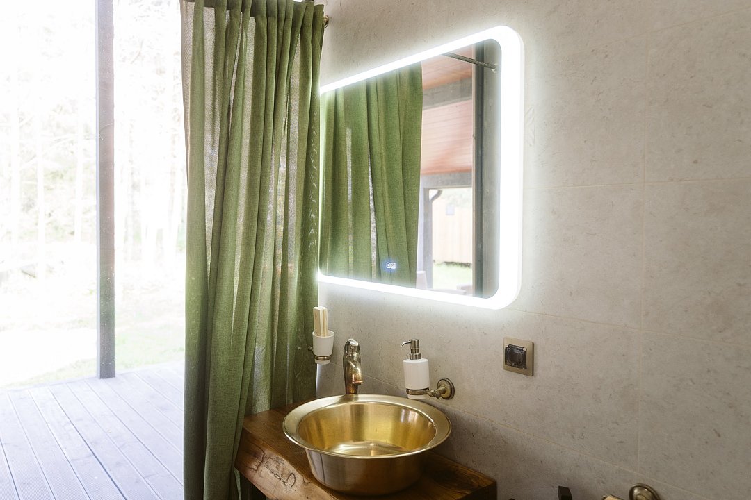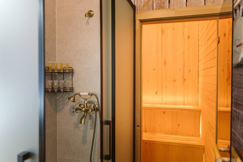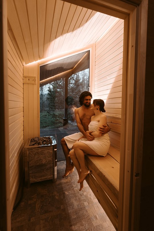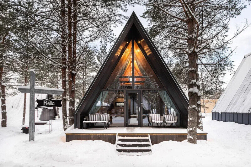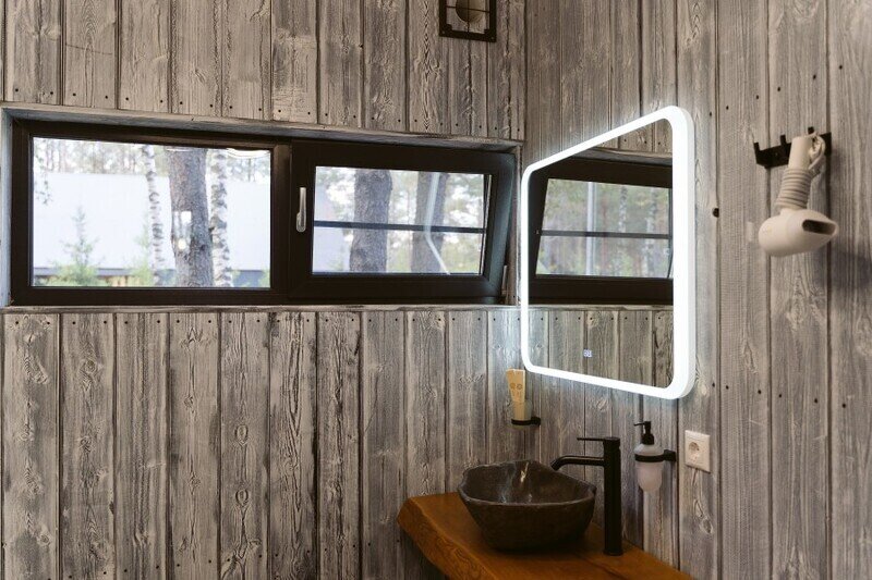 В этом уютном домике с большим панорамным окном есть своя собственная сауна.