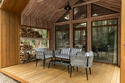 Гостиная совмещена с кухней и обеденной зоной. Увеличенная терраса с грилем и уличной мебелью для завтраков под теплыми лучами солнца и отдыха под открытым небом с видом на озеро. Есть дополнительные подушки и одеяла.