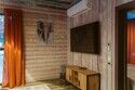 Уютный домик с одной изолированной спальней с кроватью KingSize, гостиная с камином, большим диваном кроватью с панорамными окнами.