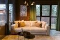 Уютный домик с одной изолированной спальней с камином и кроватью KingSize, гостиная с камином, большим диваном кроватью с панорамными окнами.