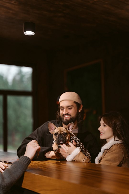 - У нас можно отдыхать с любимыми питомцами. Размещение платное. Стоимость размещения с питомцем 3000 р. При бронировании вы оплачиваете пребывание одного питомца за все время проживания в домике без ограничения по весу или породе.