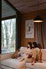 В домике есть две спальни с большой кроватью и панорамным окном в лес. А также кухня-гостиная с панорамными окнами во всю стену, мансарда с двумя односпальными кроватями и полностью оборудованная душевая, рабочее пространство. Подходит для компании друзей или семьи.