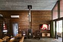 Дом с двумя спальнями, с кухней гостиной, панорамным окном и камином.