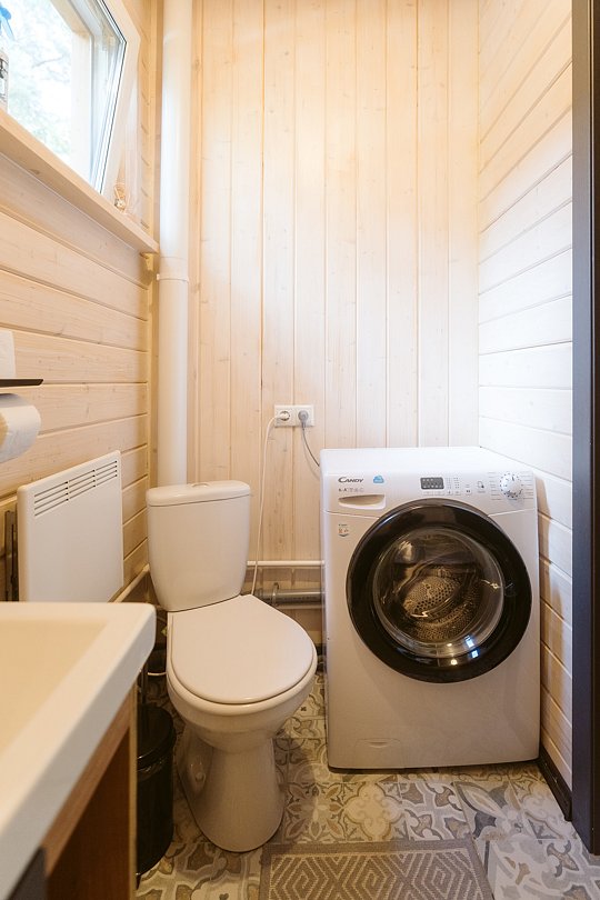 В доме есть все необходимое: электрическое отопление, телевизор с интернет каналами, спальня, гостиная, санузел, душевая с эко-косметикой и стиральной машинкой, кухня со столовыми приборами, плитой и микроволновкой, мультиварка бесплатный Wi-Fi, барбекю зона.