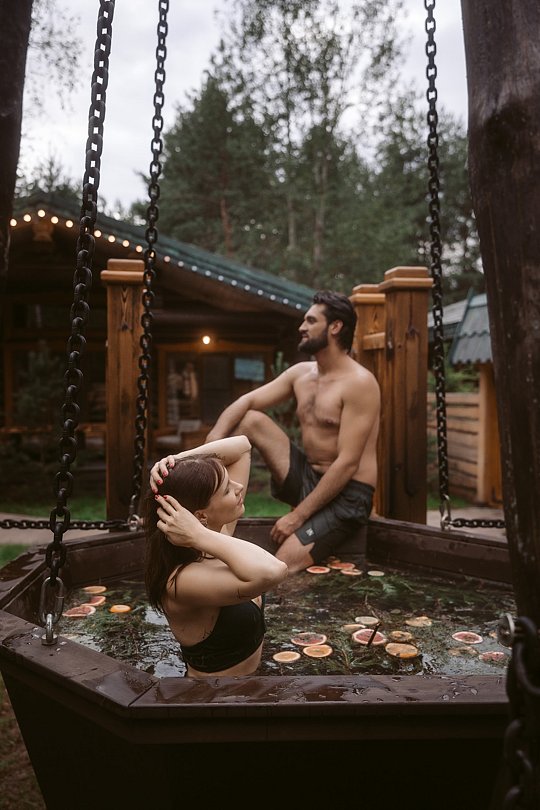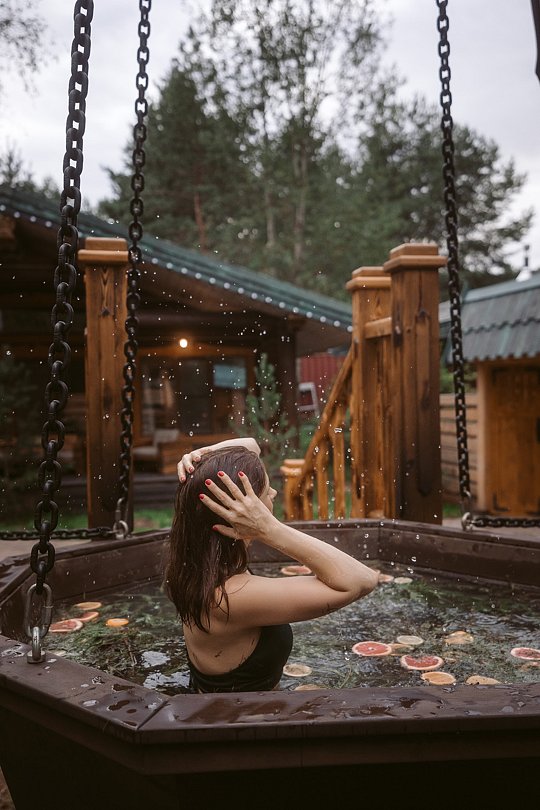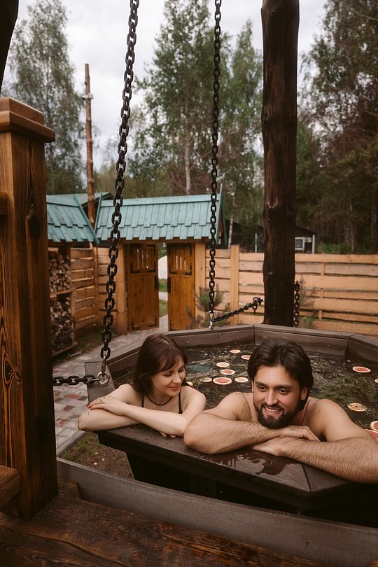 Возле домиков находится горячая купель и оплачивается дополнительно.